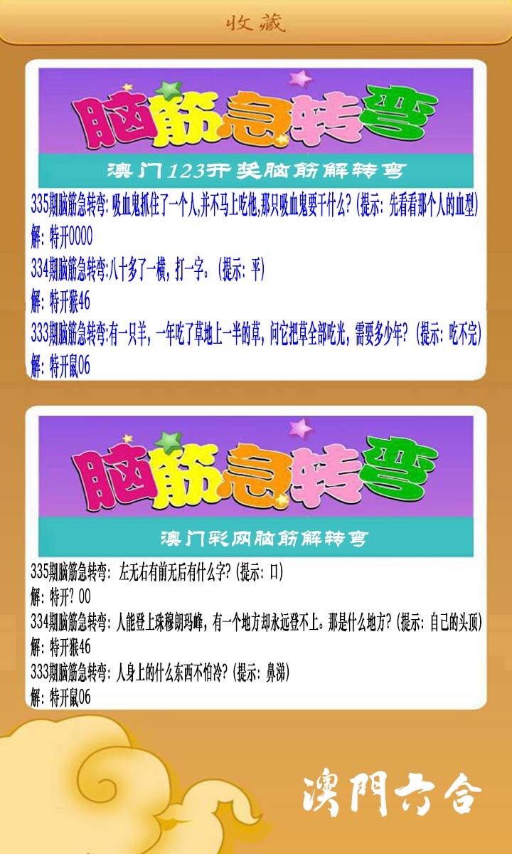 335期澳门脑筋急转弯[图]