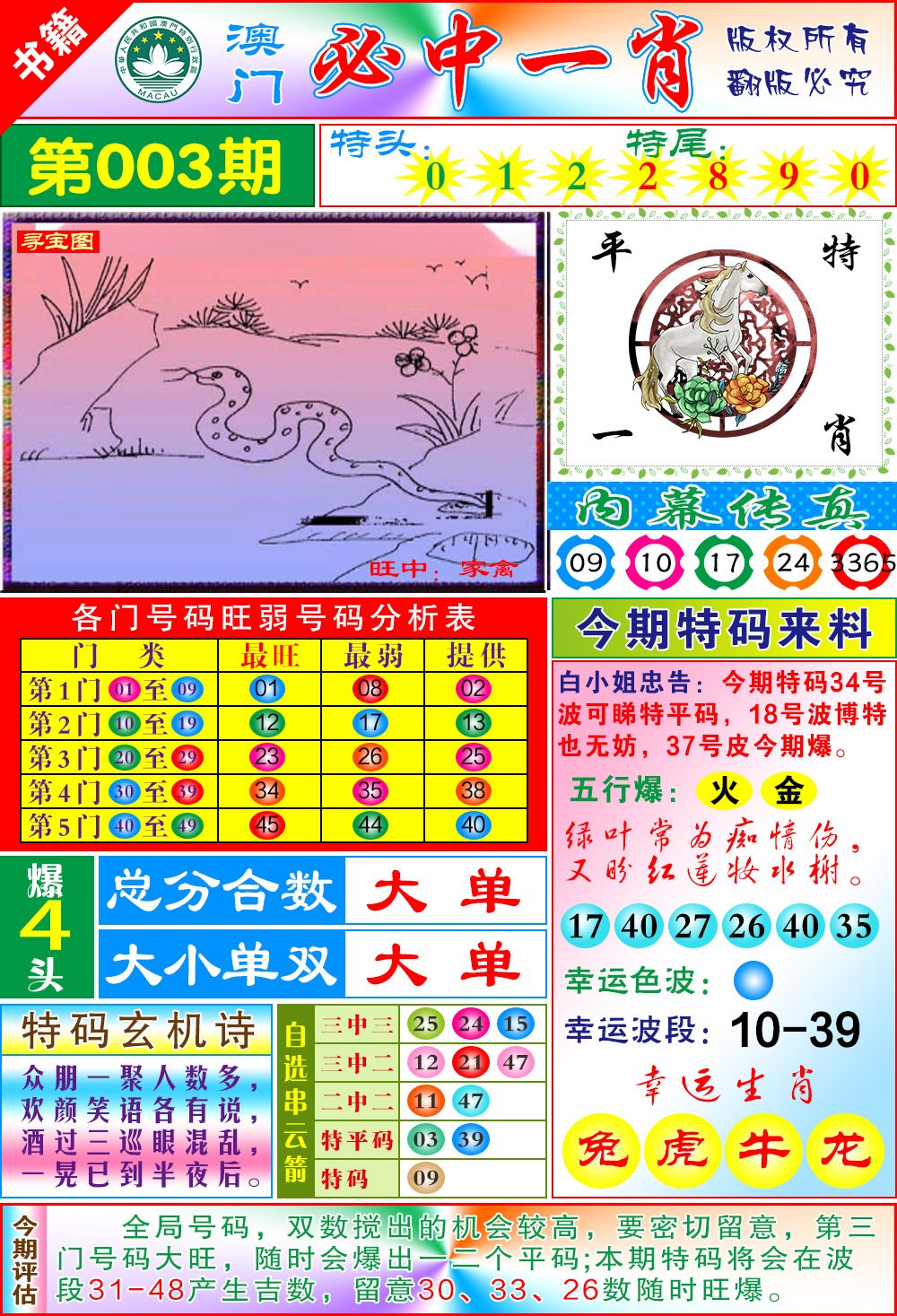 003期澳门玄机一特[图]
