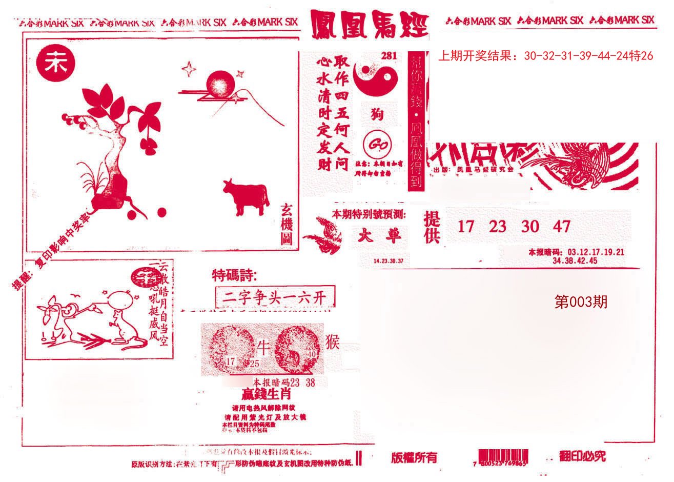 003期凤凰马经(信封)[图]