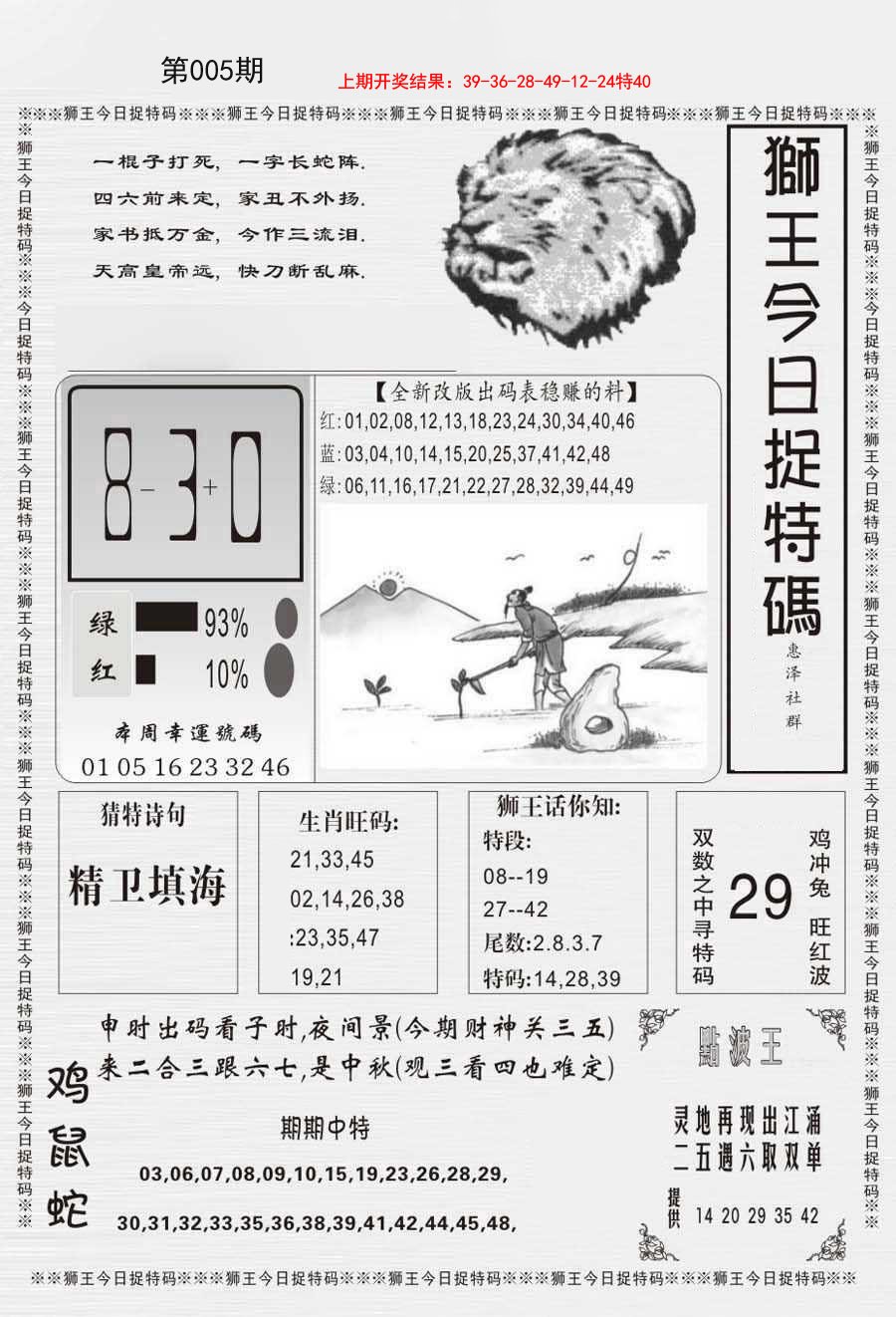 005期狮王今日抓特码[图]