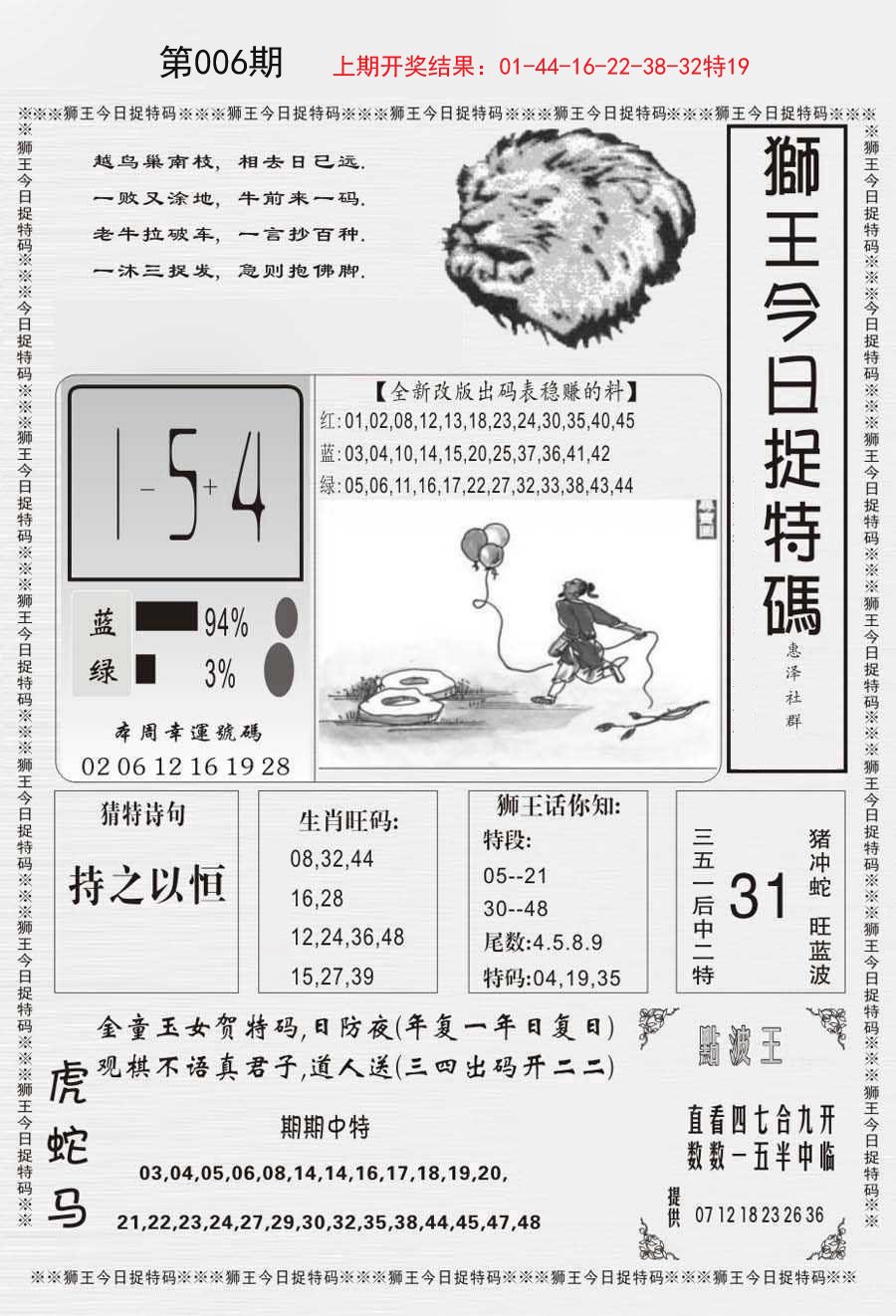 006期狮王今日抓特码[图]